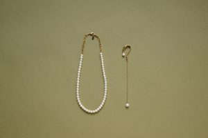 左から、パールネックレス 25,300円(4F〈ete〉で販売中) イヤリング 13,200円(Jouete/3F〈Jouete ADDITION〉で販売中)