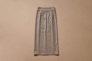 裾までやや広がったデザインながら、女性らしさを忘れない絶妙なシルエット。トップスをインしてウエストマークしても。