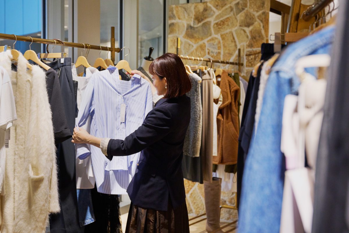 3F〈ガリャルダガランテ〉にてショッピングスタート。館内には秋冬のファッションアイテムがずらり!