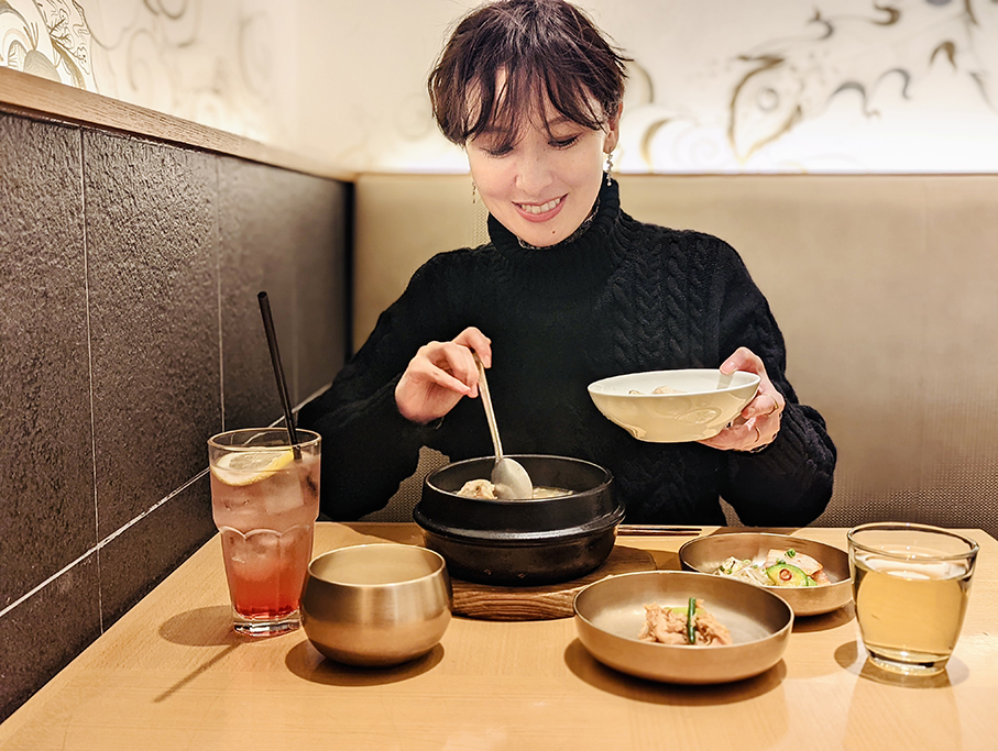 そして、身体の内側からの美を司るのは、〈渋谷 水刺齋〉。渋谷で一人サクッとランチをしたい時に利用する頻度ナンバーワンの韓国料理屋さんかもしれません。そもそもヒカリエには女性一人で利用しやすい飲食店も多いですが、カフェのような雰囲気のおしゃれな店内で「心地よさ」と「キレイ」を実感しながら、おいしい料理を楽しめるお店ってやっぱりありがたい。個人的には本格的な味わいの参鶏湯がハーフサイズで楽しめるのは嬉しいポイント。