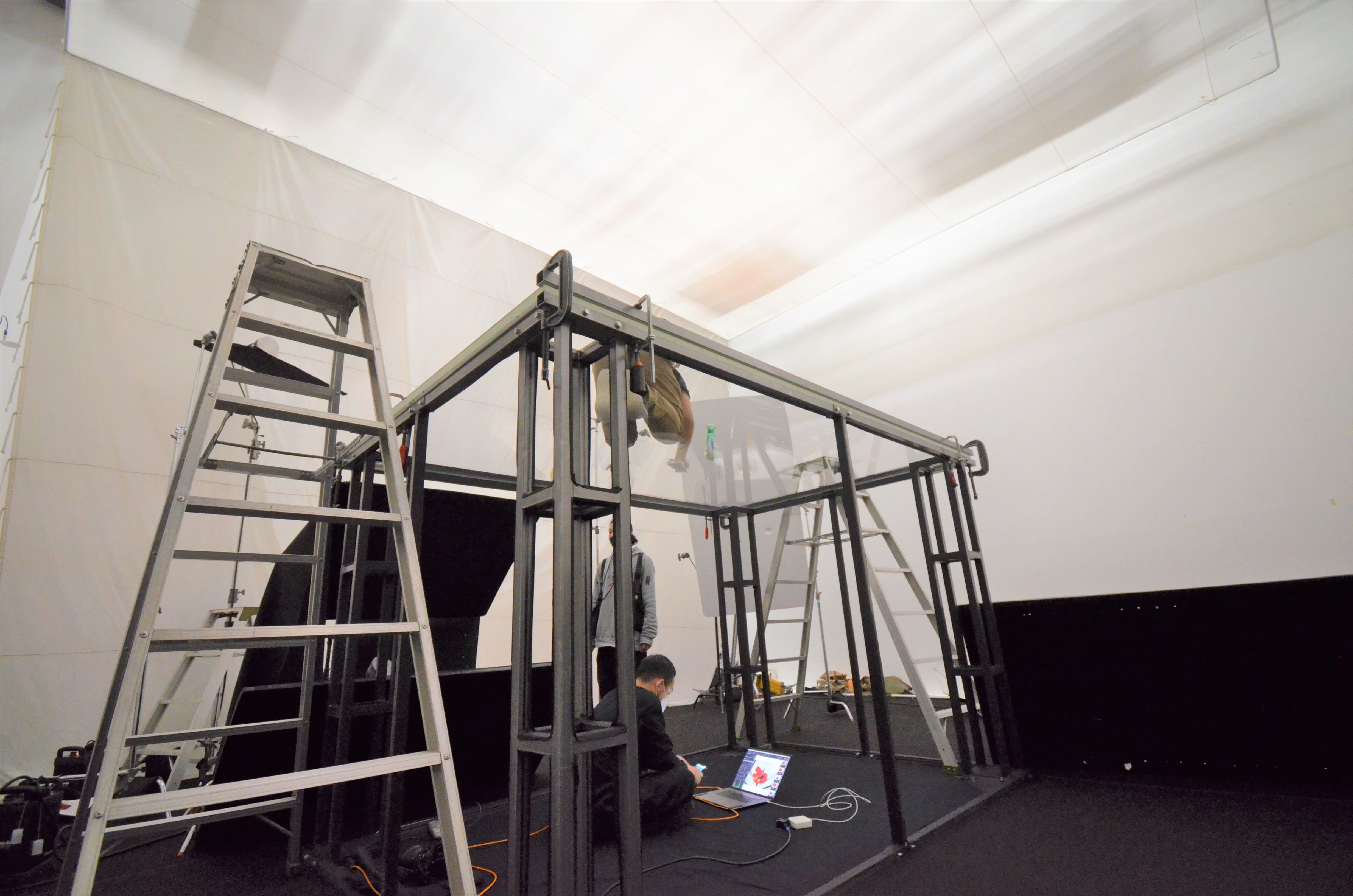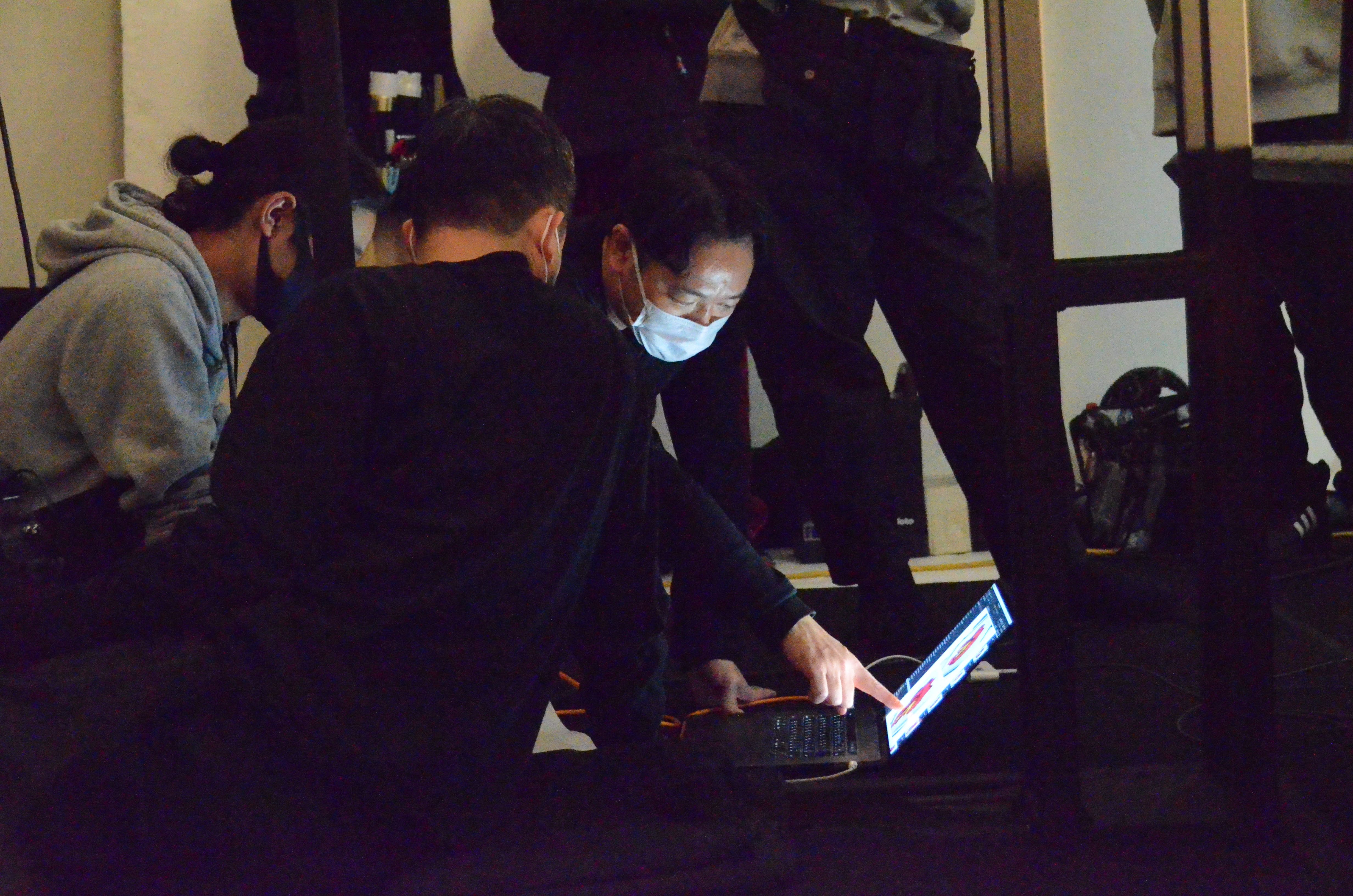 撮影は2022年1月に都内スタジオにて行われました。分厚いアクリル板が載った大きなセットが組まれていて、その下に何やら人影が・・・一体何をしているのでしょうか?