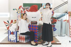 続いてカフェ&レストランフロアの6Fへ。ここでは、しっかりもので、4人をまとめるリーダー〈統括部長〉がびっくり箱パフォーマンス中。積まれたびっくり箱を見て、「クリスマスのプレゼントボックスにも見えて、サプライズ感満載!」と大木さん。箱に座れるスペースもあるので仕事熱心な〈統括部長〉と2ショットのチャンス!