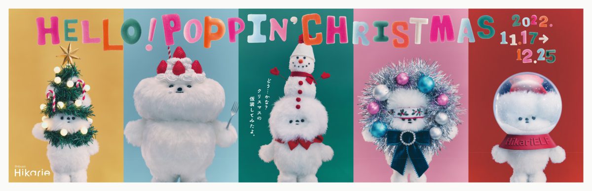 Shibuya Hikarie Christmas 2022のテーマは “HELLO! POPPIN’ CHRISTMAS.”。POPPIN’ (ポッピン)とは、“パチパチとはじけるような、ポンポンとはずむような”という意味。サンタさんが来るのを指折り数えていたこどもの頃のように、クリスマスに夢中になって、こころ躍らせてみませんか。