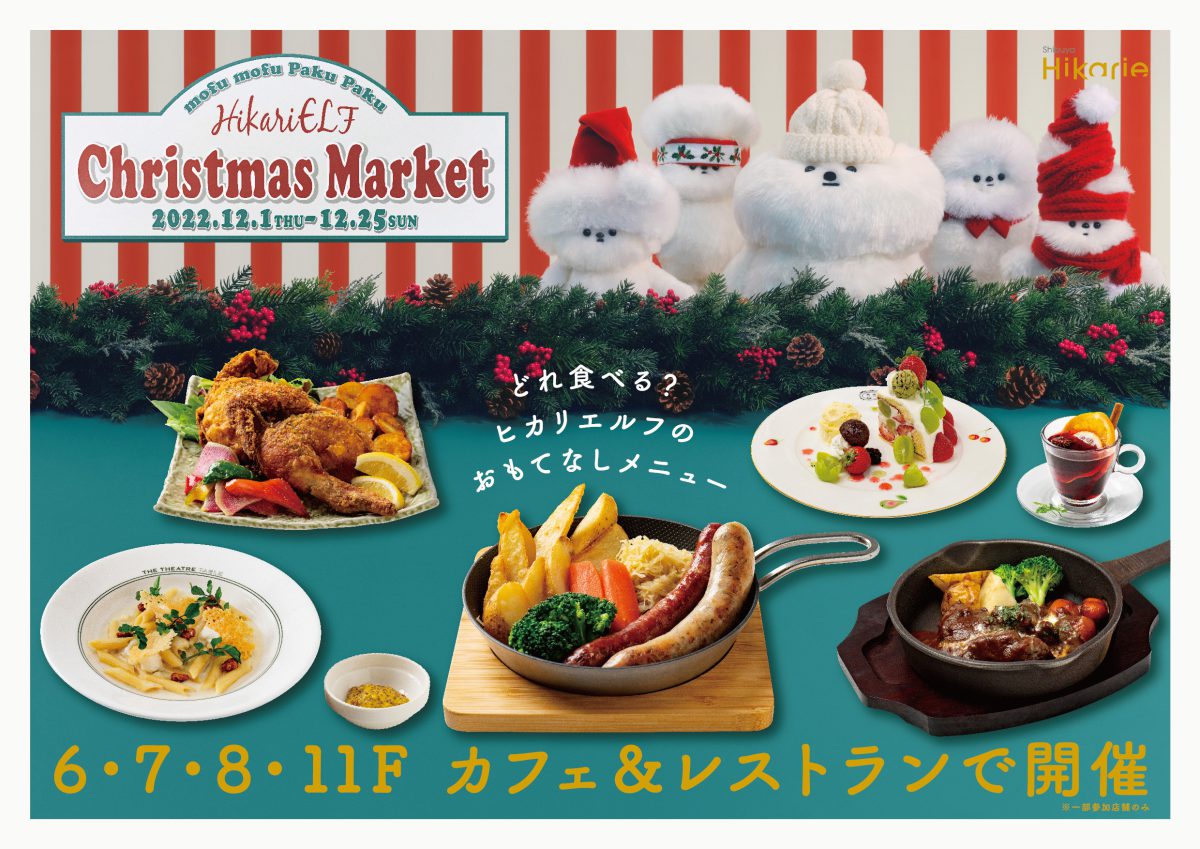 12月1日(木)からは、6F〜11Fカフェ&レストランでグルメフェアも開催されます。今年のテーマは「モフモフ!?パクパク!! HikariELF Christmas Market.」。クリスマスならではの華やかで楽しい限定メニューをぜひご賞味ください。限定メニューは別記事にてご紹介予定です。