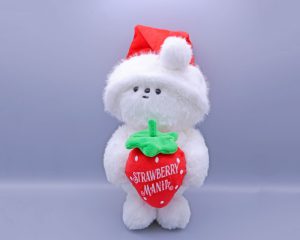 HikariELF のしっかり者のリーダー・統括部⻑のキーホルダーがストロベリーマニアのロゴ入りいちごを抱えた、渋谷ヒカリエ ShinQs限定のぬいぐるみ。ふんわり可愛いデザインで、手に取るだけでクリスマス気分が高まる特別なアイテムです。