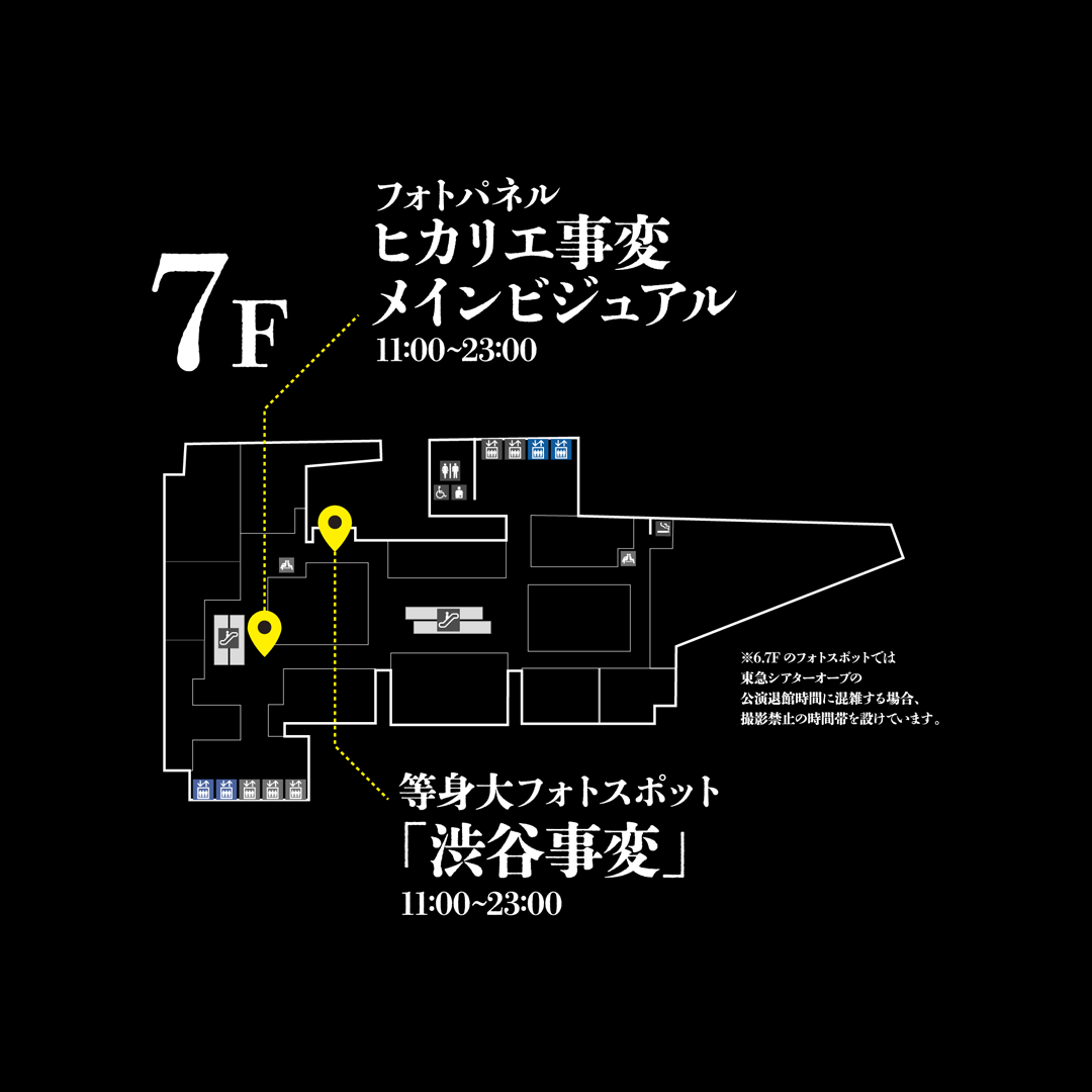 ※6F・7Fのフォトスポットでは、東急シアターオーブの公演終了時間は、安全を優先し一時的にフォトスポットの撮影利用を休止いたします。再開をお待ちいただく場合もございますので、ご了承ください。