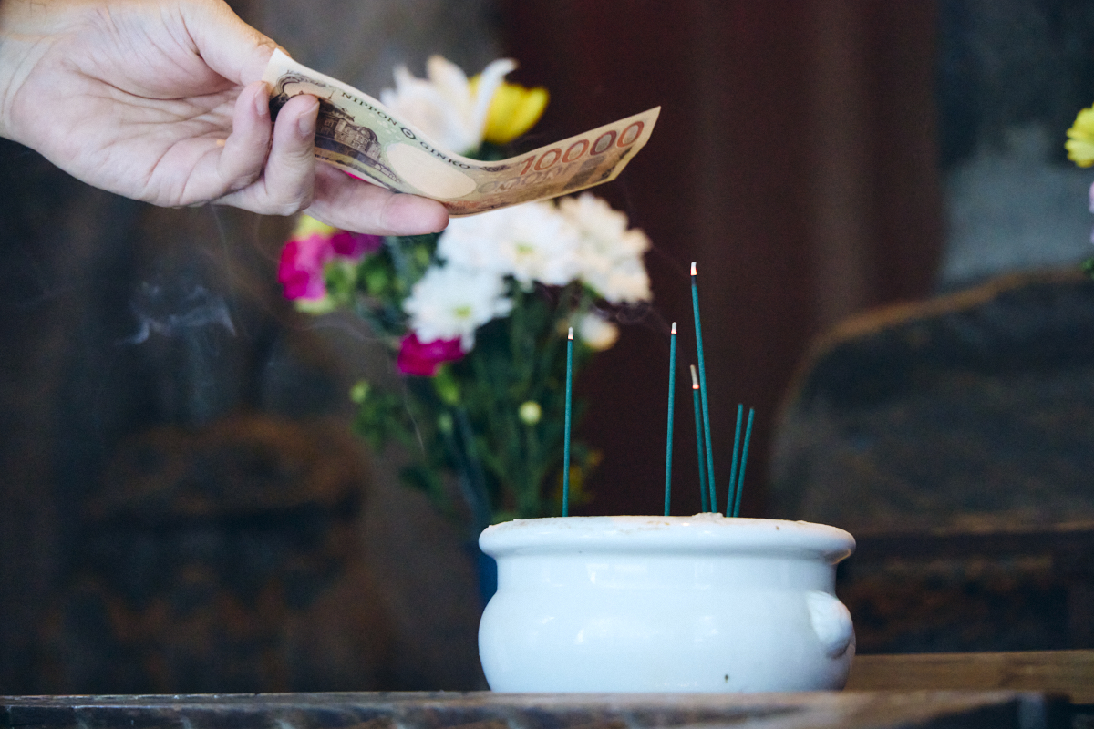 紙幣を線香の煙で炙ると富を倍々に増やすとも言われています。この線香の煙は授与所でいただいた御札や御守にも有効です。開運厄除けを願って炙ってみては。