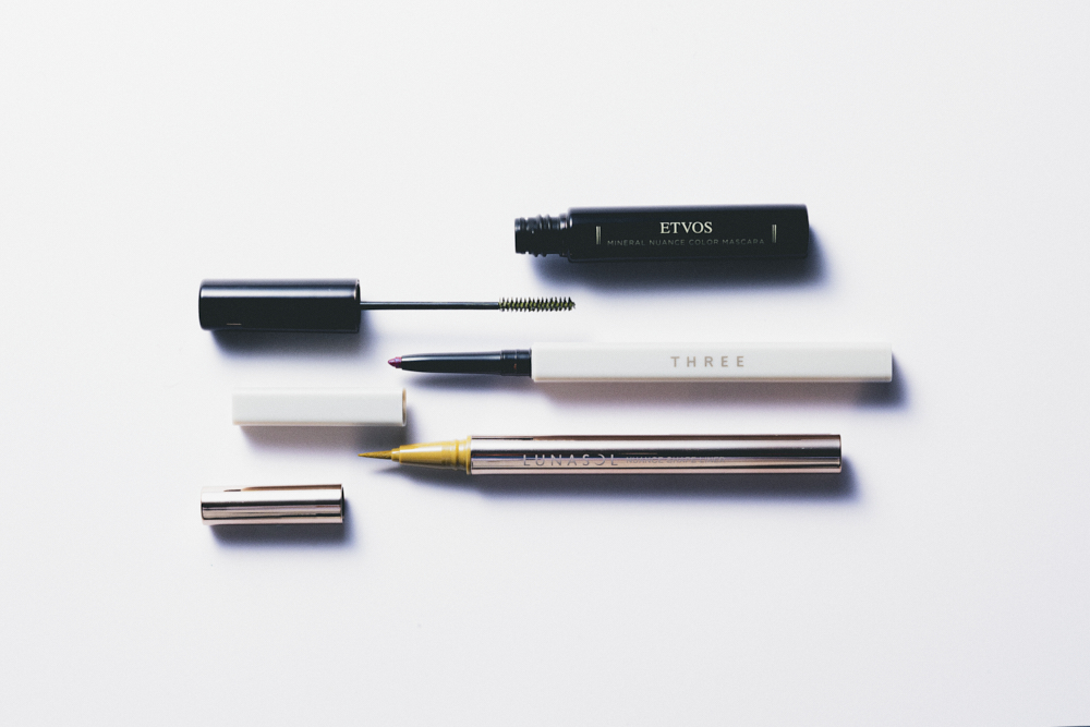 「遊び心があるのに、大人らしく知的な印象にしてくれるのが、グリーンやブルー系の寒色系マスカラやアイライナー。発色が良く見えても落ち着いたムードが出せるうえ、つけてみると意外とナチュラル。また、深い陰影や抜け感が出て、おしゃれに仕上がります」