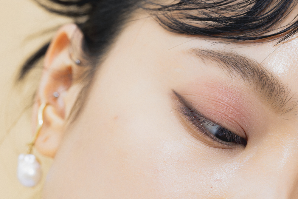 つややかな奥行きを感じる目元を演出。クールなピンクに光が差し込むように透明感のあるまなざしに導く。