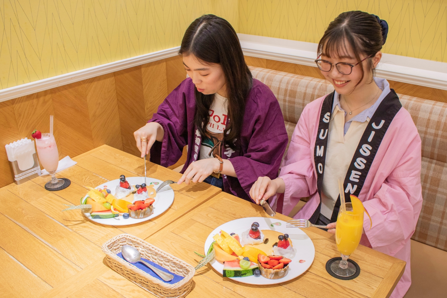 Mさん:「和と洋のいいとこ取りスイーツ!豪華なフルーツ盛りといちごに吹き込まれた力士のお顔の可愛さにギャップ萌え!」とそのおいしさに笑顔が溢れていました。