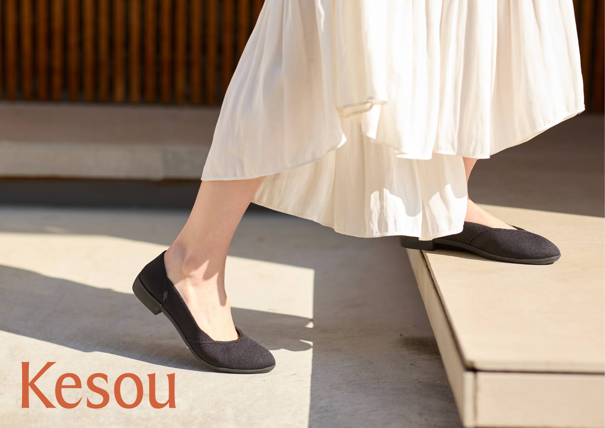 地球にやさしいものづくりを目指して誕生したパンプスブランド「Kesou」。ペットボトル再生糸を使用した驚きの軽さと柔らかいニットの肌触りは、まるでくつ下のような履き心地。足がきれいに見えるデザインかつ、19.5cm~27.0 cmの16サイズという豊富な展開で、どなたでも試しやすいパンプスです。